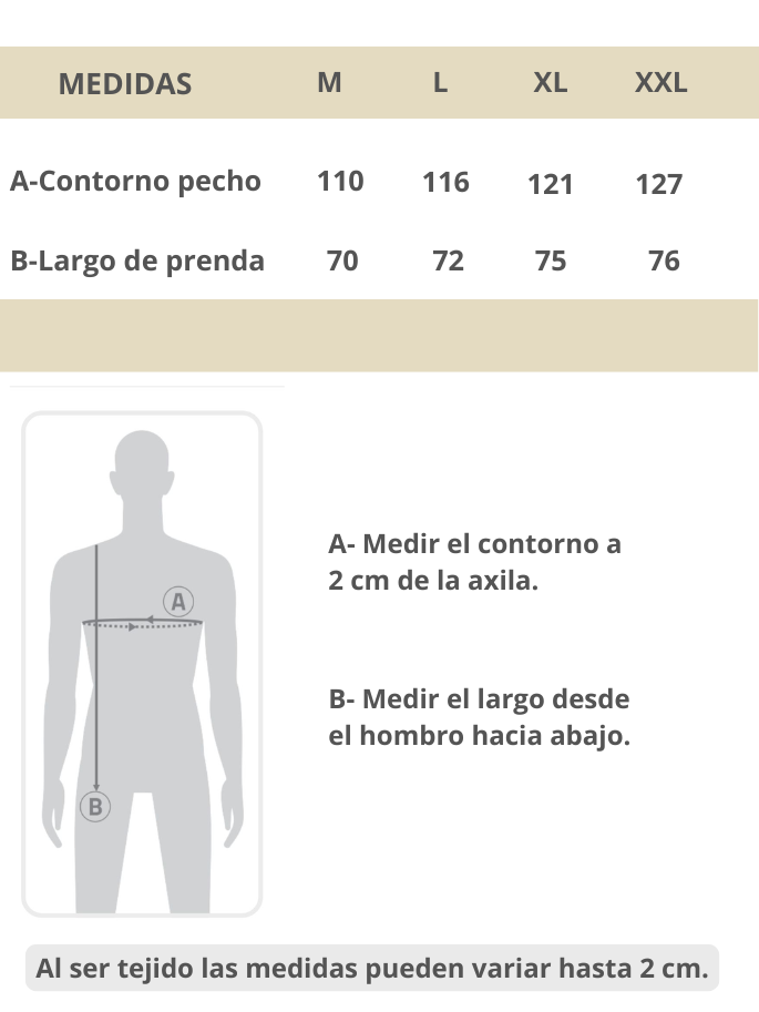 Calce: Ajuste estándar (holgado medio) que garantiza comodidad sin perder la línea.